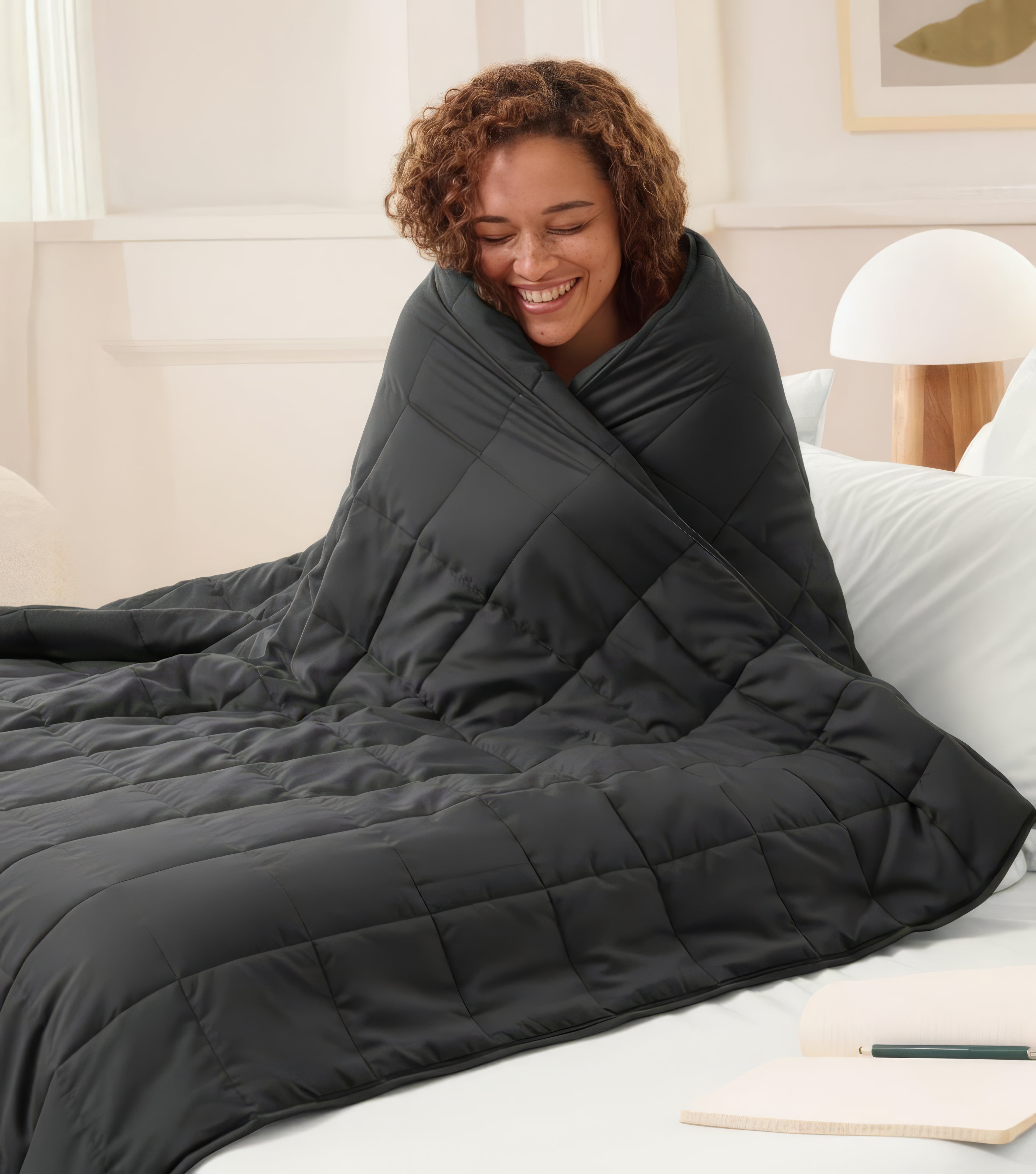 Le poids réconfortant stimule naturellement votre production de sérotonine, cette hormone qui vous fait vous sentir bien, détendu et heureux.