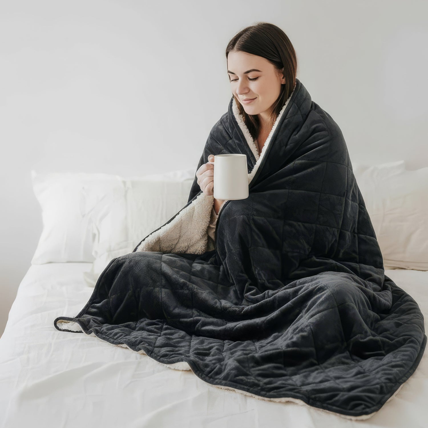 Une couverture lestée en flanelle et sherpa, conçue pour vous aider à vous endormir plus vite et à vous sentir plus apaisé, naturellement.